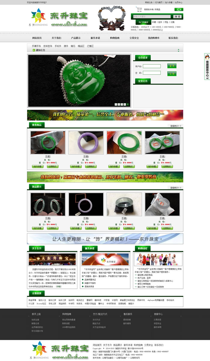 “東升珠寶”秉承“質(zhì)量第一,信譽至上,專業(yè)服務(wù),價值與價格合一”的宗旨,所有的翡翠珠寶產(chǎn)品都由專業(yè)人員親自到緬甸翡翠玉石礦產(chǎn)區(qū)采購翡翠玉石毛料,專業(yè)設(shè)計、加工,建立起了產(chǎn)、供、賭(石)、銷一條龍的專業(yè)性服務(wù)體系;“東升珠寶”品牌已覆蓋于整個中國大陸、港澳臺以及東南亞的國家或地區(qū),率先開辟了俄羅斯、中東、日本的翡翠珠寶市場,成為世界珠寶界中耳熟能詳?shù)闹閷毱放?、名?“東升珠寶”被評為全國珠寶首飾行業(yè)自律聯(lián)盟單位,云南省德宏州珠寶玉石行業(yè)誠信聯(lián)盟授予其“德宏州珠寶玉石行業(yè)誠信聯(lián)盟AAA級會員”,云南省德宏州姐告工商行政管理分局授予“五星級企業(yè)”榮譽稱號。