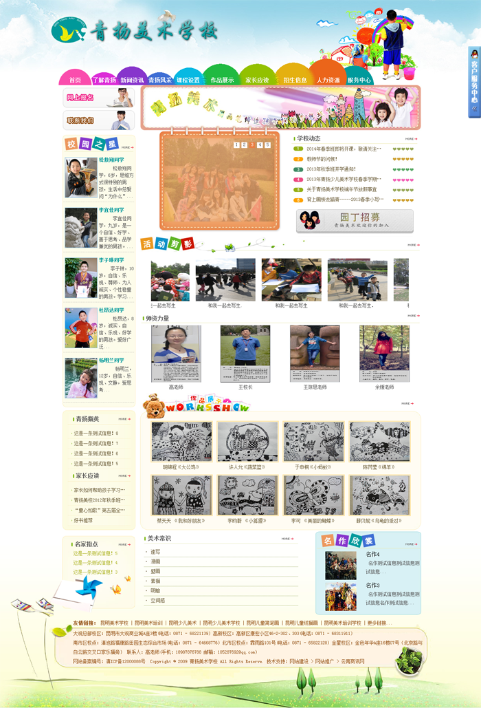 青揚美術學校在秉承傳統(tǒng)的基礎上,學校不斷探索改進教學方式,辦學以來多次在省內(nèi)、國內(nèi)以及國際美術大賽中獲特等獎、金獎、銀獎、銅獎等,學校和部分教師也多次榮獲藝術教育先進集體和個人榮譽。在每年參加的全國美術等級考試中,學生的過關率達95%以上。為使課堂內(nèi)容豐富多彩,學校凡單月安排一次緊密聯(lián)系繪畫教程的手工課;雙月安排一次外出寫生活動;每年進行一至二次校外大寫生活動;每年組織一至二次全國統(tǒng)一的美術等級考試;每年組織一至二次國內(nèi)及國際較有影響的大型美術比賽。