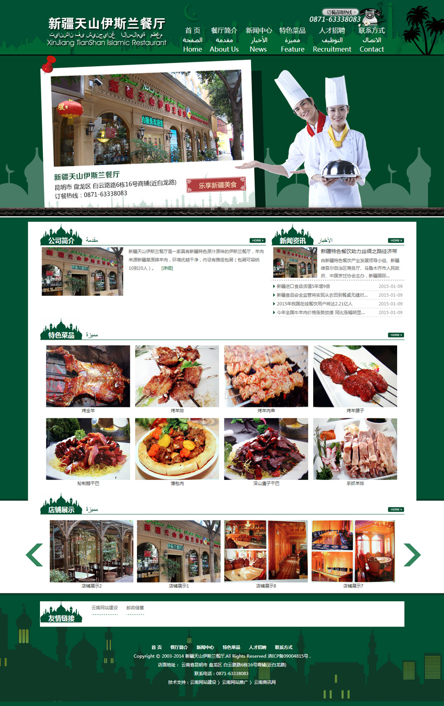 新疆天山伊斯蘭餐廳是一家具有新疆特色原汁原味的伊斯蘭餐廳,羊肉來源新疆草原綿羊肉,環(huán)境優(yōu)越干凈,內(nèi)設(shè)有雅座包廂(包廂可容納10到20人)。