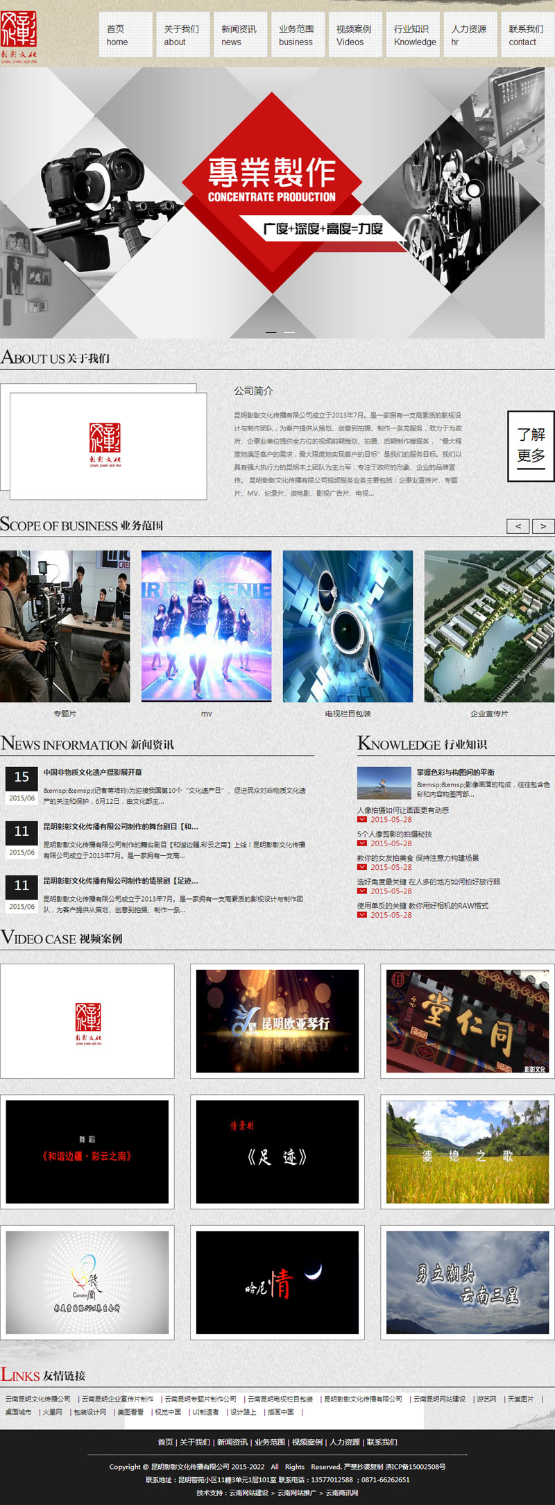 昆明彰彰文化傳播有限公司視頻服務(wù)業(yè)務(wù)主要包括:企事業(yè)宣傳片、專題片、MV、紀(jì)錄片、微電影、影視廣告片、電視欄目包裝、晚會(huì)、聚會(huì)等制作服務(wù)。