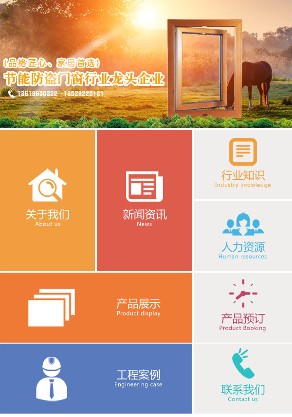 公司從事門窗制作銷售已達(dá)10余年時間,我公司所有的產(chǎn)品接受定制化生產(chǎn)服務(wù)。從產(chǎn)品的形狀、材料的選用,客戶都可以根據(jù)自身的需要打造不一樣的門窗產(chǎn)品。公司成立至今各類工程案例總計達(dá)千余個工程以上,我們的產(chǎn)品質(zhì)優(yōu)價廉。有需要的朋友可以隨時與我公司聯(lián)系。聯(lián)系電話:13619650322 13529225131
