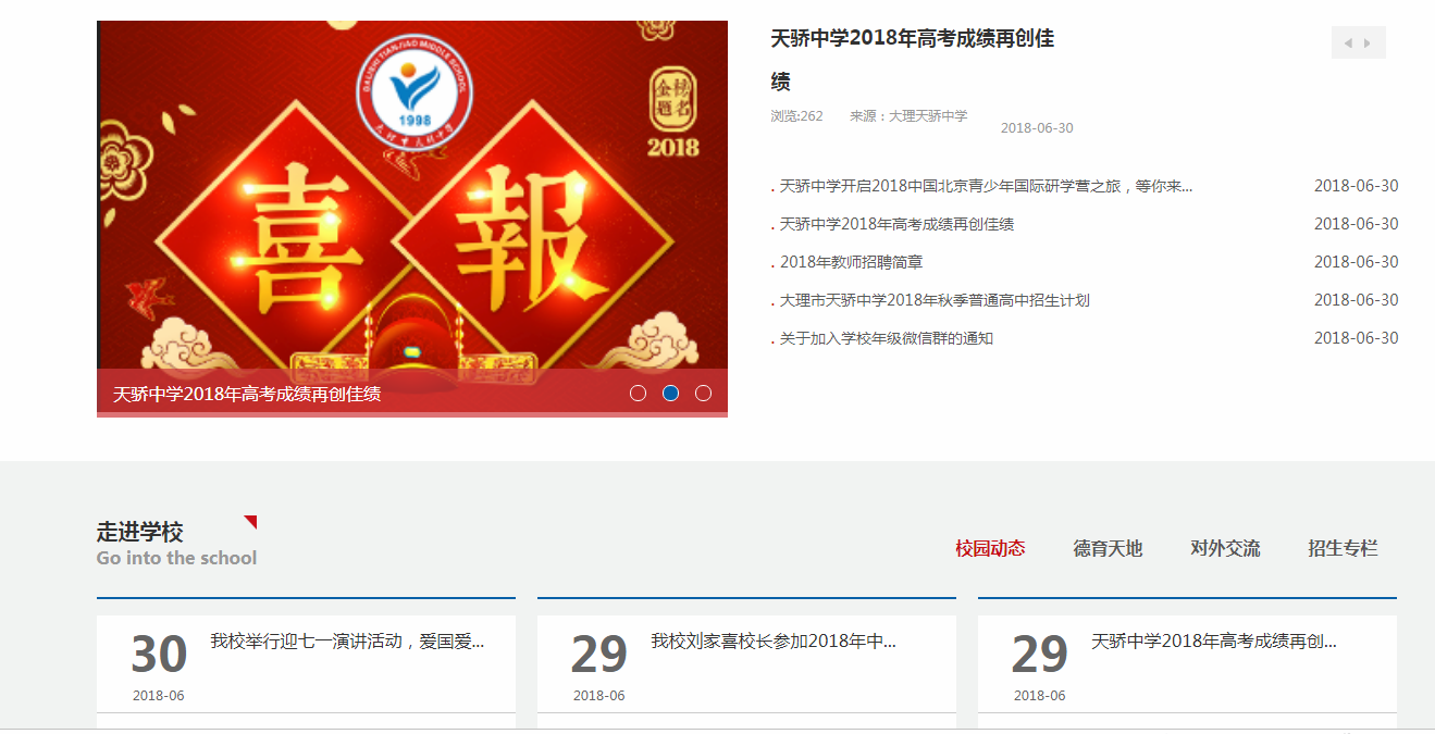 2017年大理市天驕中學(xué)與國內(nèi)外名校開展深入交流合作,擴(kuò)大了學(xué)校辦學(xué)的外延和內(nèi)涵。學(xué)校占地四十余畝,環(huán)境安靜優(yōu)雅,空氣清新,勁松翠柏環(huán)繞校園,校內(nèi)各種教學(xué)和生活設(shè)施齊全。學(xué)校占地四十余畝,環(huán)境安靜優(yōu)雅,空氣清新,勁松翠柏環(huán)繞校園,校內(nèi)各種教學(xué)和生活設(shè)施齊全。