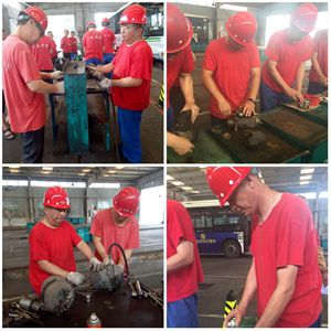 參加此次技術(shù)大比武的人員很多都是有著三十年維修經(jīng)驗(yàn)的老師傅,平均年齡超過(guò)了55歲。雖已不再年輕,但他們手上的功夫卻更顯純熟。三十分鐘的比賽時(shí)間里,汗水順著臉頰滴落,卻沒(méi)有人去伸手擦拭,任憑汗水打透紅色的衣衫,他們用忘我的工作精神和積極的工作態(tài)度為年輕人樹(shù)立正確的榜樣,做到真正的傳、幫、帶。也只有這樣才能帶出好徒弟,為公司帶出真正需要的技術(shù)人員,公司才能保障良性持續(xù)健康的發(fā)展。