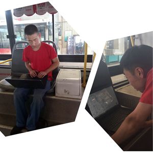 此次技術(shù)比武中,有兩位年輕的技術(shù)骨干,薄海東就是其中一個(gè)。他個(gè)頭兒不高卻能發(fā)揮優(yōu)勢(shì),在需要鉆車(chē)底、大個(gè)子進(jìn)不去的地方他都積極向前。而且骨子里也有一股倔強(qiáng)勁兒,他不但各項(xiàng)修理技術(shù)手到擒來(lái)而且用電腦查車(chē)輛問(wèn)題也是一把好手,綜合能力突出,體現(xiàn)了新一代公交修理人的風(fēng)采。