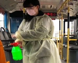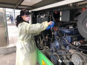 2月24日2路第一天恢復運營,每部參運車輛多出一名隨車體溫檢測員,王穎跟丈夫分在同車組。早晨6:00,夫妻倆已經到2路始發(fā)站唐山站,開始出車前的準備工作:檢查完車輛安全,再打掃干凈衛(wèi)生,噴灑消毒液對車廂每處角落進行徹底消殺。王穎跟丈夫一對一天輪流開車、進行登記,從唐山站行駛到啟新立交橋后,就要停留兩分鐘嚴格落實一車次一消毒。遇見急躁的乘客,王穎就耐心勸導;有不明白的老年乘客想乘車,她也總不厭其煩地解釋溝通。