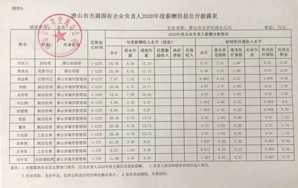 唐山市市屬國(guó)有企業(yè)負(fù)責(zé)人2020年度薪酬信息