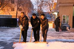 5點(diǎn),分公司、路隊(duì)兩級(jí)管理人員全部按照分工,到達(dá)指定線路、樞紐站,開始協(xié)助司機(jī)加水、熱車,做好發(fā)車前的準(zhǔn)備。6點(diǎn)半,總公司、分公司機(jī)關(guān)管理人員開始清掃站點(diǎn)積雪;客流集中的各大站點(diǎn),管理人員已經(jīng)在疏導(dǎo)乘客,指揮車輛進(jìn)出站。初冬的凌晨溫度最低,冷風(fēng)直透心底。上午9點(diǎn)多,當(dāng)直播五十分和唐山交通臺(tái)的記者趕到遠(yuǎn)洋城站點(diǎn)采訪時(shí),一公司的管理人員已在此堅(jiān)守了四個(gè)多小時(shí)。大雪讓車身結(jié)了厚厚的一層冰和泥,保潔員們用工具一點(diǎn)一點(diǎn)艱難地清理著。