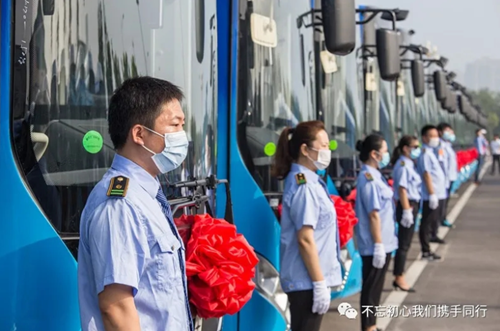 8月11日上午,唐山市新能源公交車上線運(yùn)營啟動儀式在唐山站公交樞紐舉行,市委常委、常務(wù)副市長付振波,市政府副秘書長、“一港雙城”辦主任任艾泉,市人大城環(huán)委主任王玉升,市城管執(zhí)法局黨組書記、局長冀桂梅,市政協(xié)提案委辦公室主任劉貴臣,市交通運(yùn)輸局副局長李東興,市城管執(zhí)法局四級調(diào)研員石中波,總公司總經(jīng)理劉東占、黨委書記夏保良出席啟動儀式。在啟動儀式上,市城管執(zhí)法局黨組書記、局長冀桂梅同志致詞,總結(jié)概括近年來唐山公交事業(yè)發(fā)展取得成績,全面介紹了純電動公交車更新?lián)Q代情況,市委常委、常務(wù)副市長付振波同志宣布2020年唐山市新能源公交車正式啟用上線運(yùn)營。