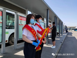 在市區(qū)主要公交站點(diǎn),公交團(tuán)員和青年志愿者積極引導(dǎo)市民群眾文明有序乘車(chē),攙扶老人上下車(chē),幫乘客拎提重物,耐心解答乘客咨詢(xún),宣傳安全出行知識(shí),為乘客提供便捷的出行服務(wù)。