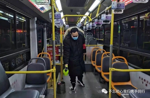 凌晨5:20,等待發(fā)車的我迎來幾張陌生面孔,莫不是新入職的駕駛員?原來他們暫時不能承擔(dān)駕駛員的工作,但是他們加入了防控的隊伍。為準備上崗的駕駛員測量體溫,給運營車輛在出車前、收車后集中消殺通風(fēng),針對乘客易接觸的投幣箱、扶手、座椅等部位重點消毒,嚴格執(zhí)行一趟一通風(fēng)、一趟一消殺。老搭檔告訴我,只有接受消毒噴灑的洗禮,才能躋身抗擊疫情的行列。“來吧,我身經(jīng)百戰(zhàn),怎會退縮!”一切準備完畢,出發(fā)。