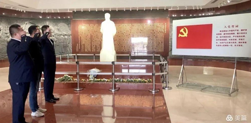 當(dāng)大家踏上象征李大釗革命生涯的38級(jí)臺(tái)階,走進(jìn)紀(jì)念館,步入威嚴(yán)、莊重的紀(jì)念館大廳,在李大釗塑像前整齊列隊(duì)、莊嚴(yán)肅立,集體默哀深深鞠躬,表達(dá)緬懷和敬意。之后,面對(duì)鮮紅的黨旗,唐山公交基層黨支部書記帶領(lǐng)兩名預(yù)備黨員緊握右拳,莊嚴(yán)宣誓。支部黨員干部集體重溫了入黨誓詞,在誓言中共同表達(dá)了對(duì)共產(chǎn)黨的無(wú)比忠誠(chéng)和對(duì)革命精神的無(wú)比敬佩。